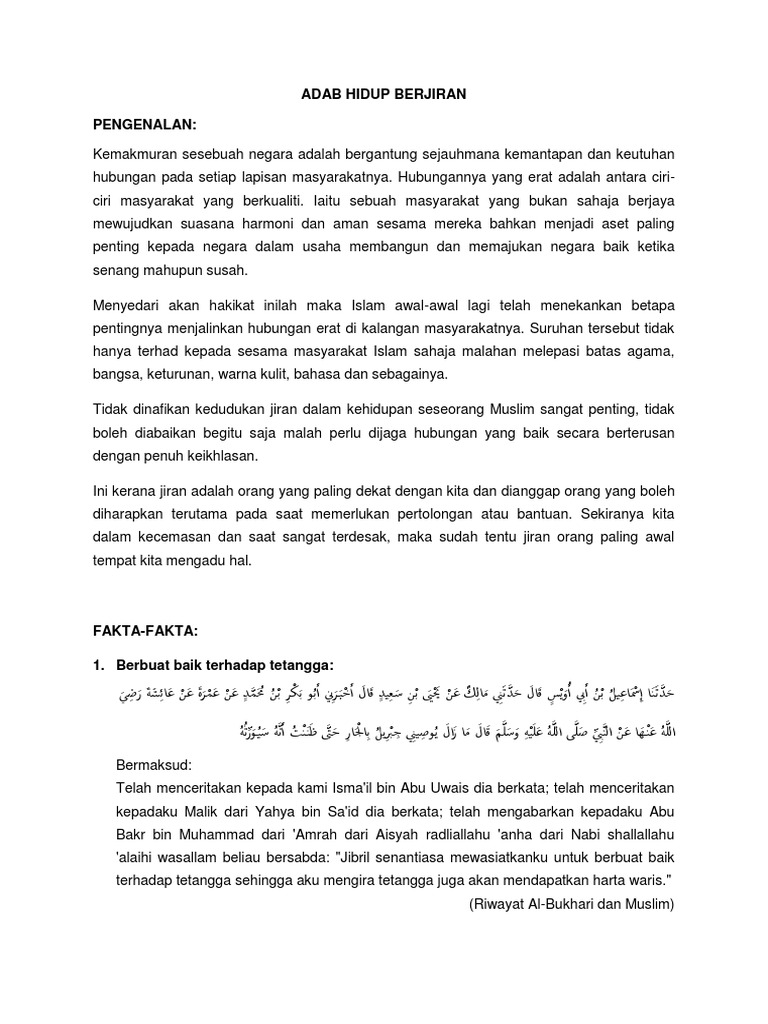 Posted by Unknown at. Dalam konteks kejiranan umat Islam perlu saling menghormati dan sentiasa menjaga keselamatan diri dan harta benda.