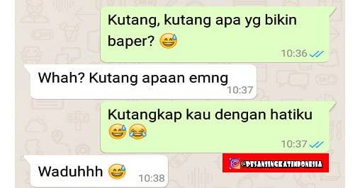 Gak cuma punya jari manis tapi wajahnya juga manis. Gombalan pun ada banyak macamnya lho. Soalnya kalau merem langsung kebayang wajahmu Kata-kata gombalan lucu romantis satu ini bisa kamu gunakan ketika pasangan kamu sedang jenuh karena tugas sekolah atau tugas kamu yang membuat pikirannya jenuh 12Orang kurus itu setia makan aja tidak pernah nambah apalagi.
